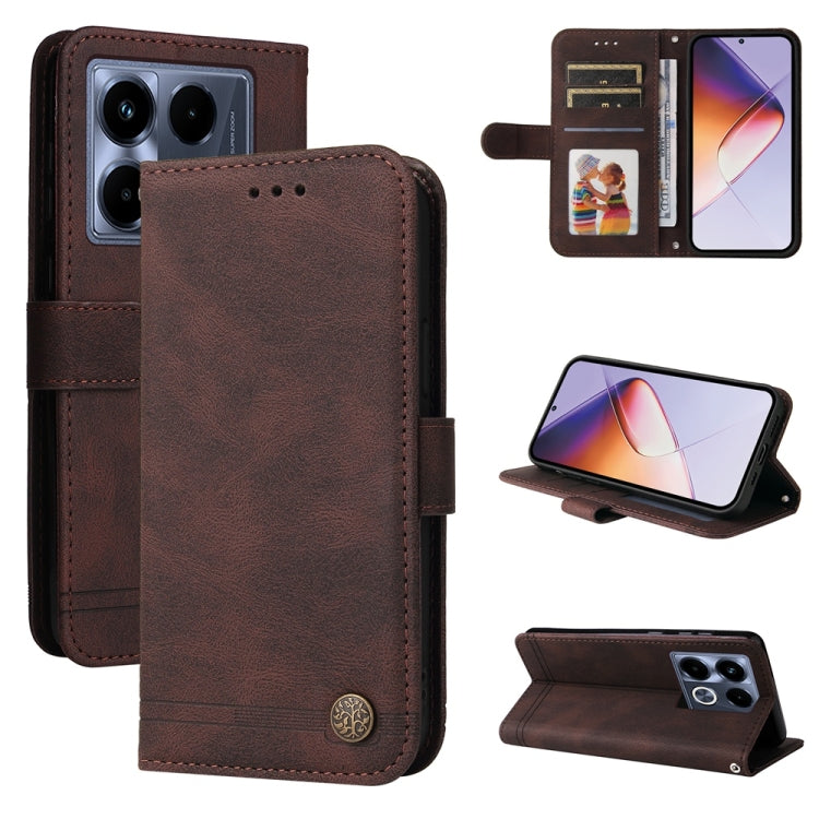 Funda de Cuero con Botones de Metal y Diseño Árbol de la Vida para Infinix Note 40 4G (Marrón)