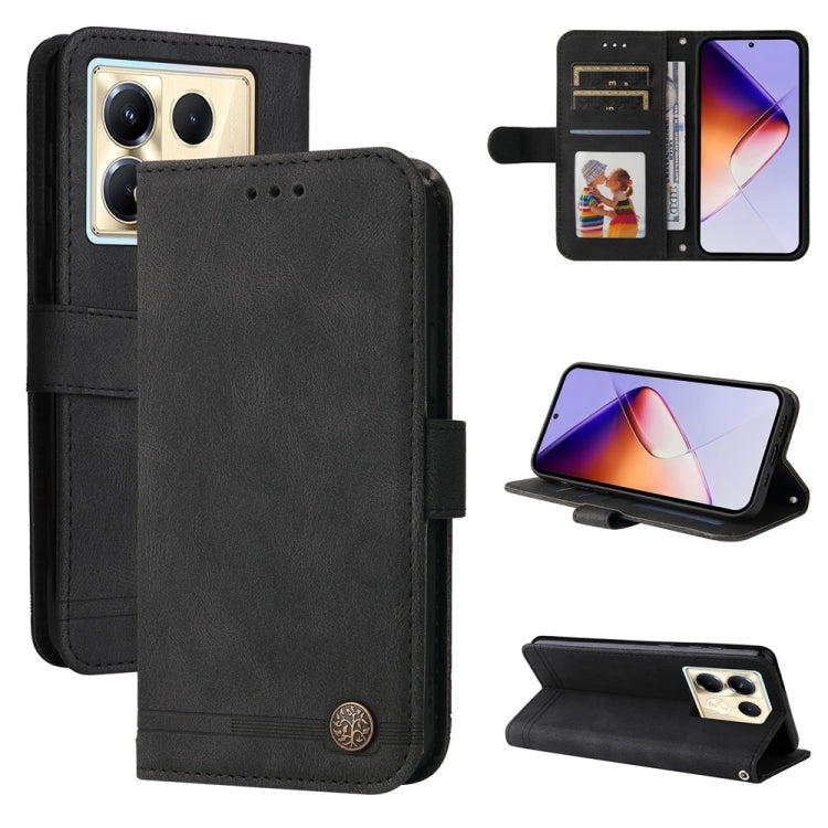 Funda de Cuero con Botones de Metal y Diseño Árbol de la Vida para Infinix Note 40 5G (Negro)