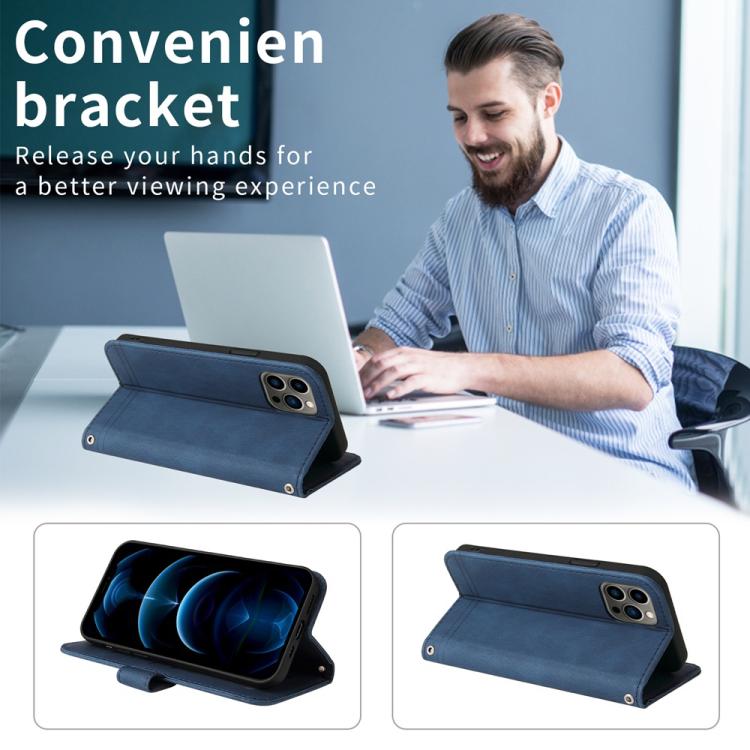 Funda de Cuero con Botones de Metal y Diseño Árbol de la Vida para Motorola Moto G15/G15 Power (Azul)
