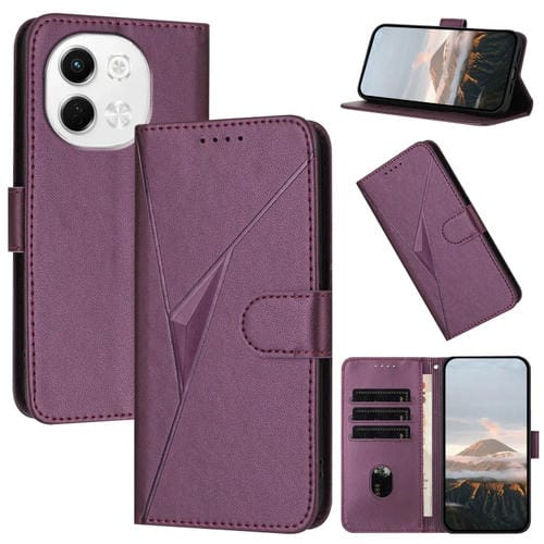 Funda de Cuero para Tecno Pova 6 Neo 5G y Spark 30 5G con Cierre de Hebilla y Diseño Triangular (Morado Oscuro)