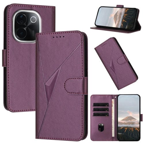 Funda de Cuero con Hebilla y Diseño Triangular para Vivo Iqoo Z9S Pro (Morado Oscuro)