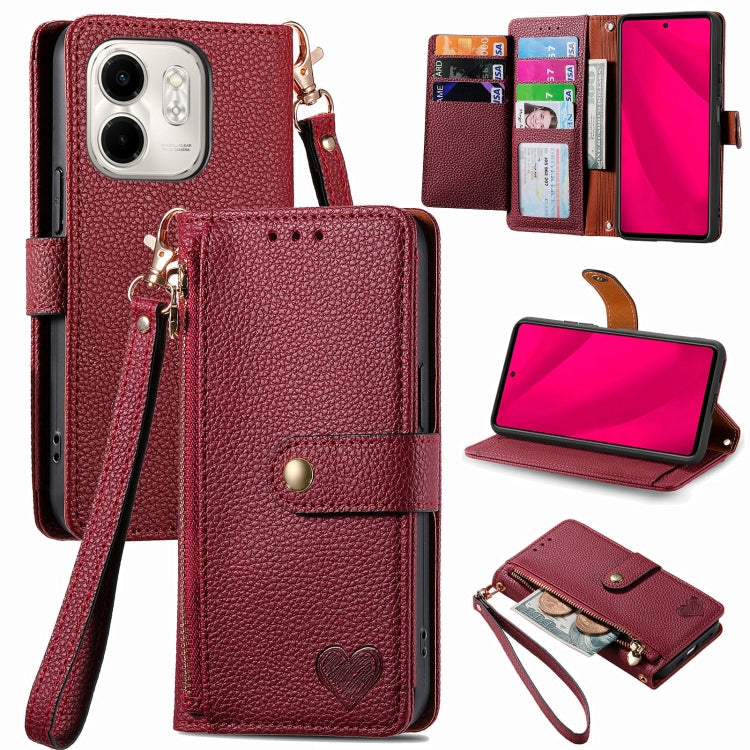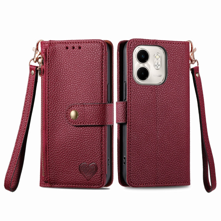 Funda de Cuero con Cordón y Cremallera Love para Infinix Smart 9 (Roja)
