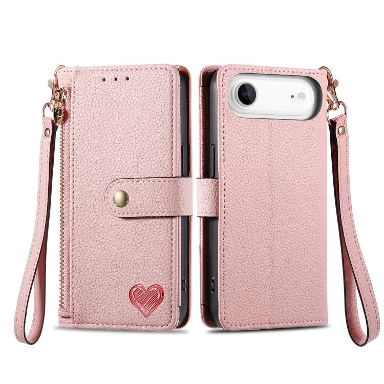 Funda de cuero con cordón y cremallera Love para iPhone Air (rosa)