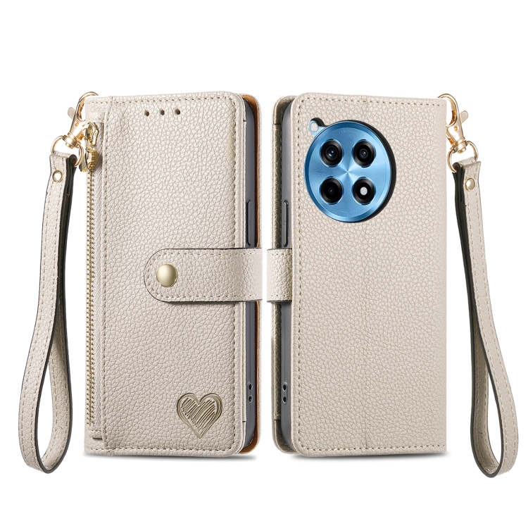 Funda de Cuero con Cordón y Cremallera Love para OnePlus Ace 3 Pro (Gris)