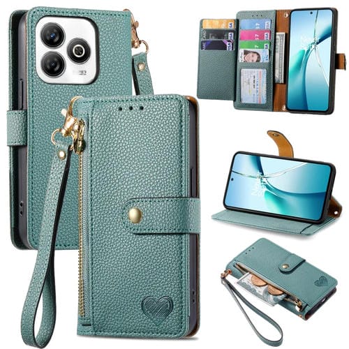 Funda de Cuero con Cordón y Cremallera Love para ZTE Blade A75 4G (Verde)