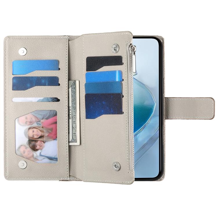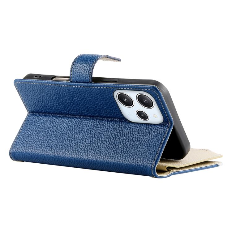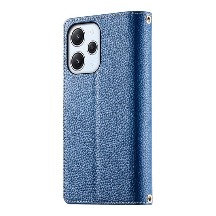 Funda de cuero con cremallera para Redmi 12 4G / 5G / Note 12R, con costuras, para múltiples tarjetas y correa corta (azul oscuro)