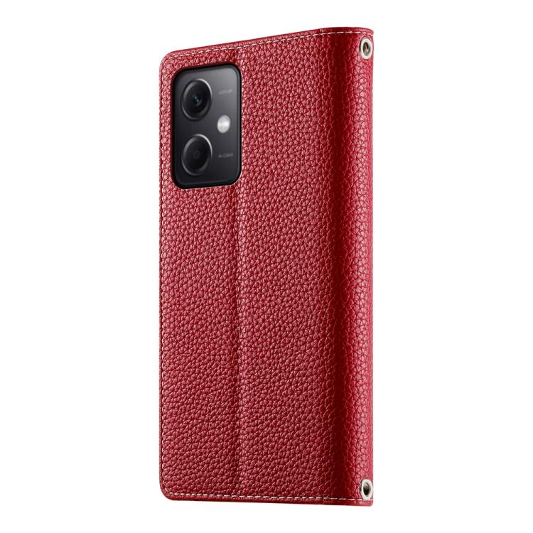 Funda de cuero con cremallera para Redmi Note 12 5G Global / Xiaomi Poco X5, con costuras, para múltiples tarjetas y correa corta (roja)