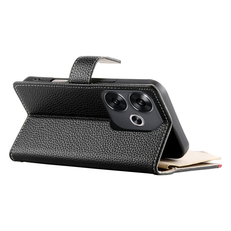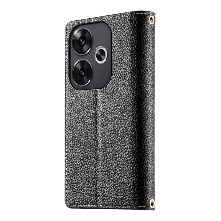 Funda de cuero con cremallera para Redmi Turbo 3 y Xiaomi Poco F6, con costuras, para múltiples tarjetas y correa corta (negra)