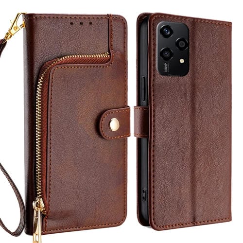 Funda de Cuero con Cremallera para Honor 200 Lite 5G (Marrón)