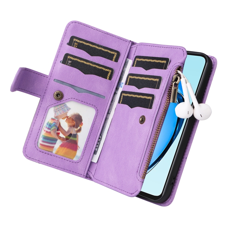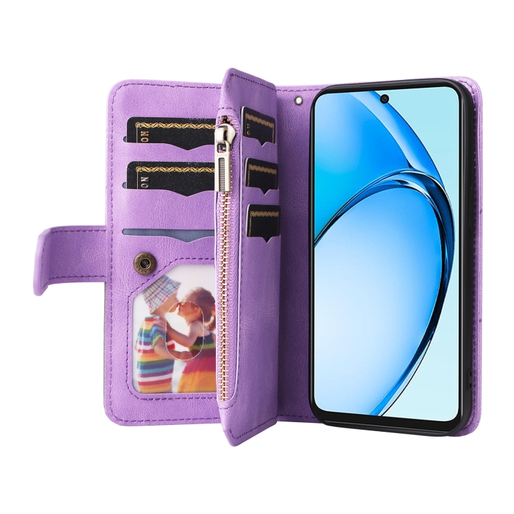 Funda de Cuero con Cremallera para Teléfono Oppo A60 4G, de Dos Colores, con 9 Ranuras para Tarjetas (Morado)