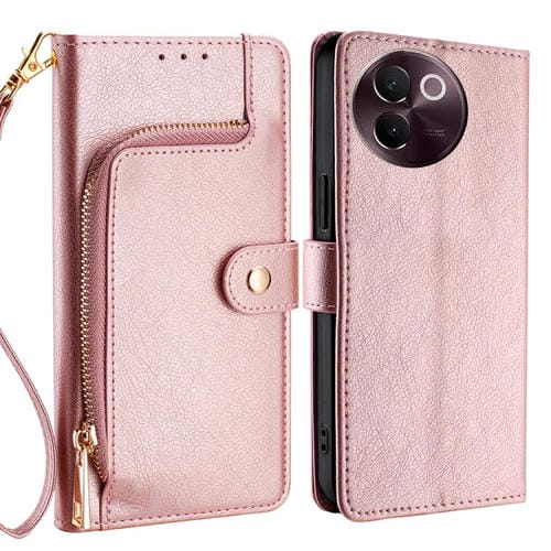Funda de Cuero con Cremallera para Teléfono Vivo V30E 5G Global (Oro Rosa)