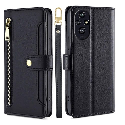 Funda de Cuero con Cremallera y Textura de Oveja para Honor 200 5G (Negro)