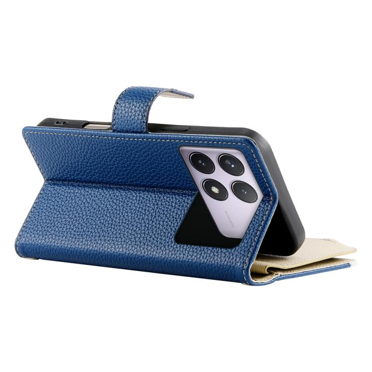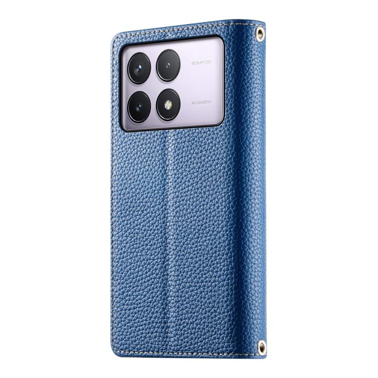 Funda de cuero con cremallera y múltiples tarjetas para Redmi K70 / K70 Pro / Poco F6 Pro, con costuras y correa corta (azul oscuro)