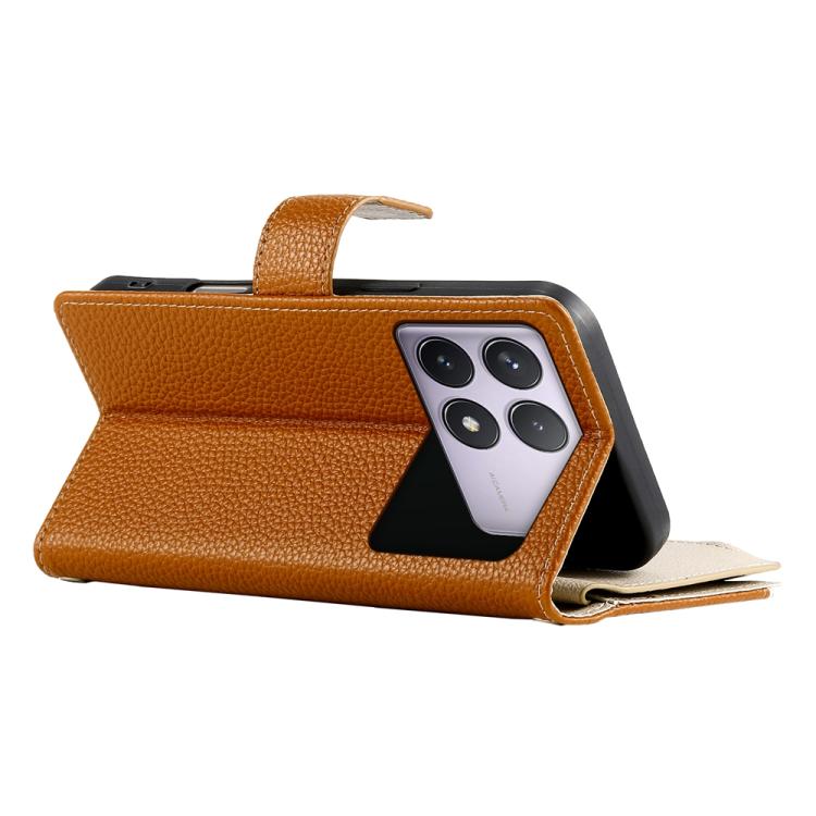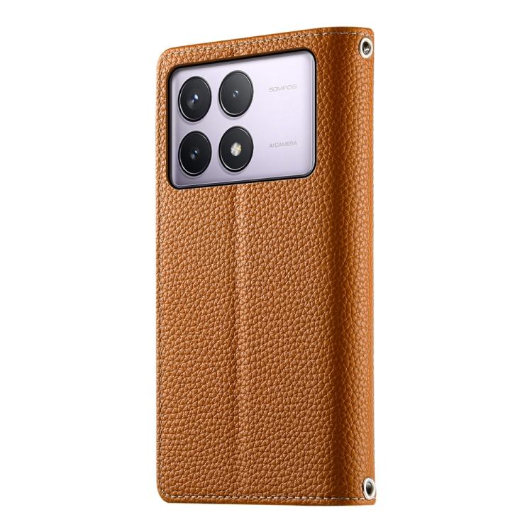 Funda de cuero con cremallera y múltiples tarjetas para Redmi K70 / K70 Pro / Poco F6 Pro, con costuras y correa corta (marrón)