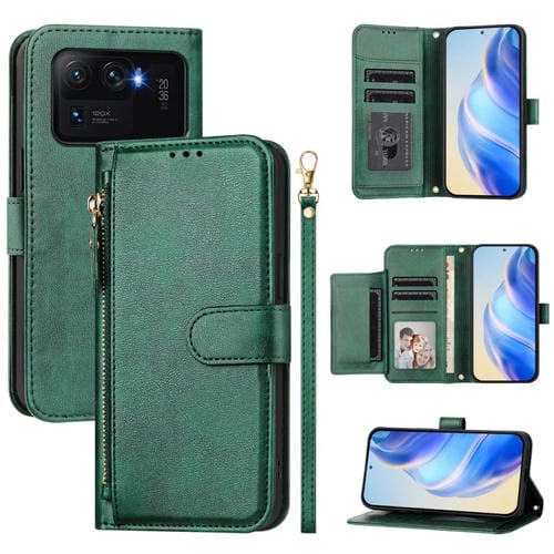 Funda de Cuero con Cremallera y Ranuras para Múltiples Tarjetas para Xiaomi Mi 11 Ultra (Verde)