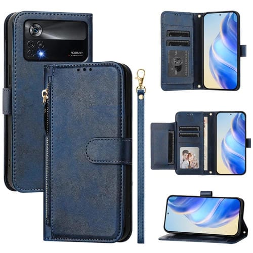 Funda de Cuero con Cremallera y Ranuras para Múltiples Tarjetas para Xiaomi Poco X4 Pro 5G (Azul)