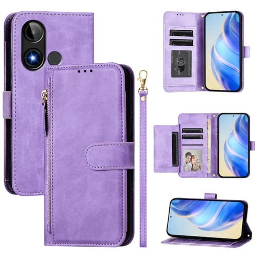 Funda de Cuero con Cremallera y Ranuras para Tarjetas Blu C9 (Morado)