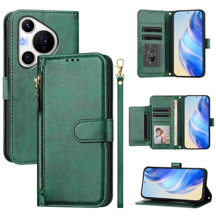 Funda de Cuero con Cremallera y Ranuras para Tarjetas para Huawei Pura 70 Pro/Pura 70 Pro+ (Verde)