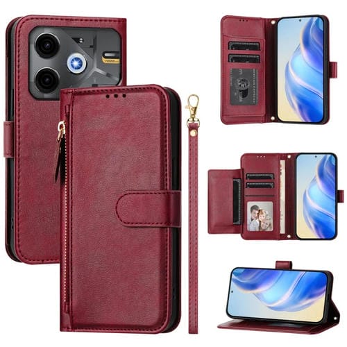 Funda de Cuero con Cremallera para Tecno Pova 6 Neo (Rojo Oscuro)