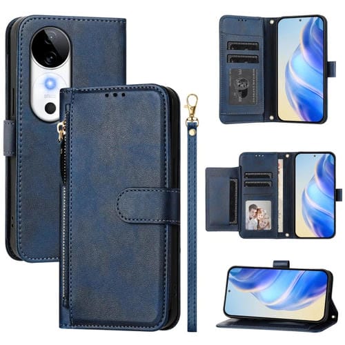 Funda de Cuero con Cremallera y Ranuras para Varias Tarjetas para Vivo S19 (Azul)