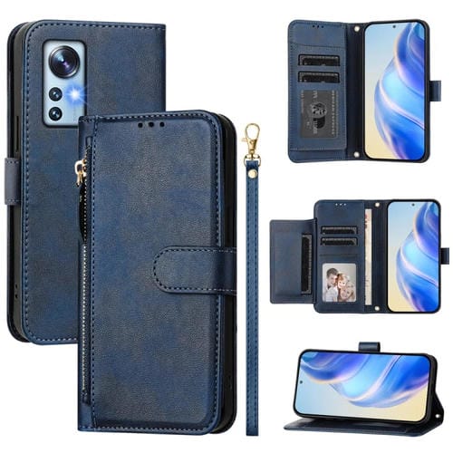Funda de Cuero con Cremallera y Ranuras para Varias Tarjetas para Xiaomi 12/12X/12S (Azul)