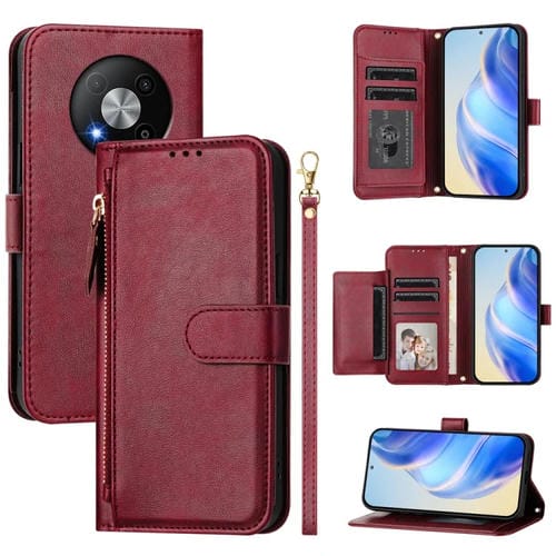 Funda de Cuero con Cremallera y Ranuras para Tarjetas para ZTE Blade A73 5G (Rojo Oscuro)