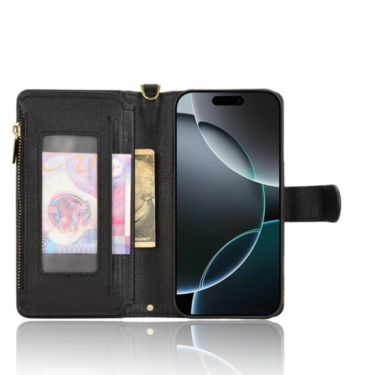 Funda de Cuero con Cremallera y Textura de Lichi para iPhone 16 Pro (Negra)