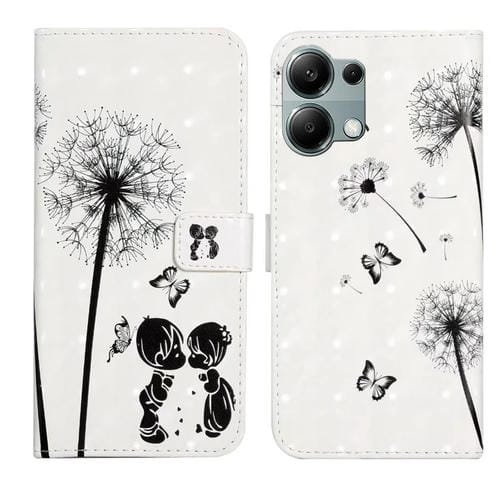 Funda de Cuero con Dibujo 3D En Relieve de Aceite para Redmi Note 13 Pro 4G (Pareja de Dientes de León)