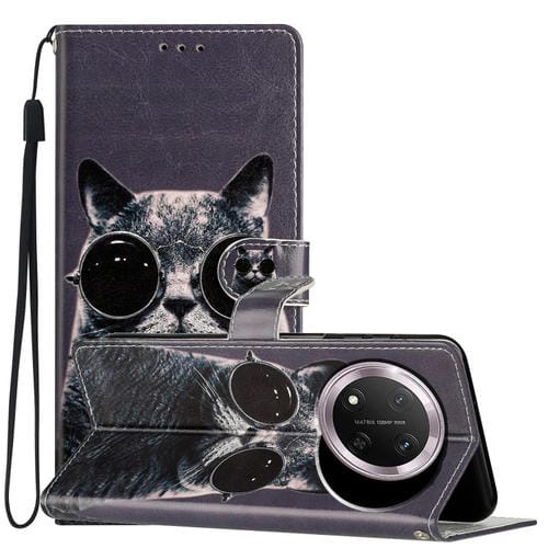 Funda de Cuero para Honor X9C 5G con Dibujo a Color Gafas de Sol y Gato