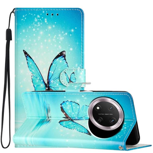 Funda de Cuero para Honor X9C 5G con Dibujo Mariposa Azul