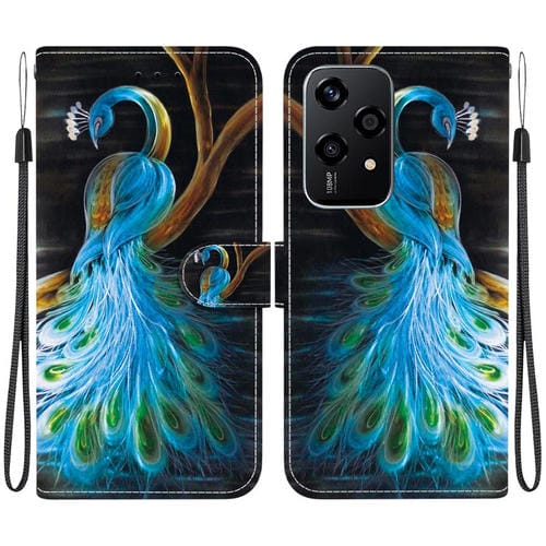 Funda de Cuero Honor 200 Lite con Dibujo a Color y Textura de Cristal (Pavo Real)
