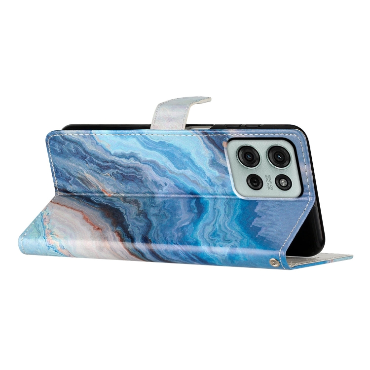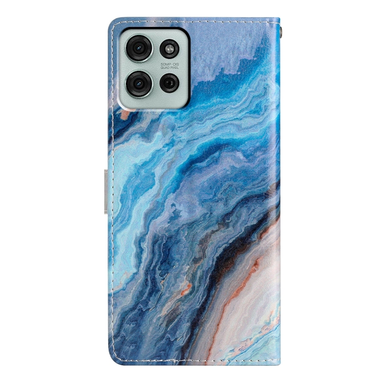Funda de Cuero Motorola Moto G75 5G con Dibujo de Colores (Mármol Azul)