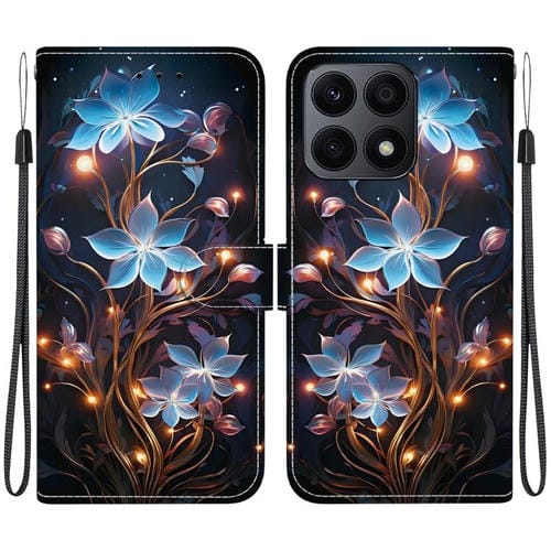 Funda de Cuero con Dibujo y Textura de Cristal para Honor X8A (Flor de Linterna)