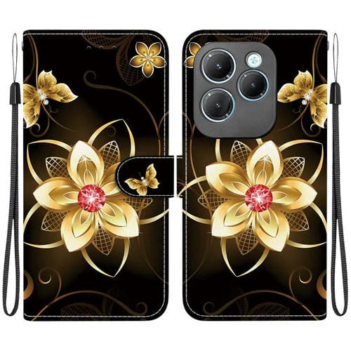 Funda de Cuero con Dibujo y Textura de Cristal para Infinix Hot 40/40 Pro (Flor Dorada)