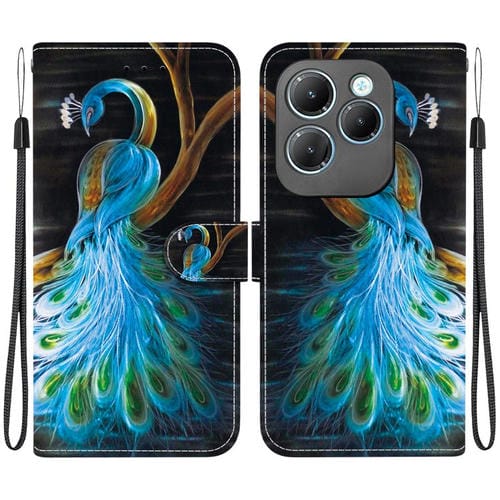 Funda de Cuero con Dibujo y Textura de Cristal para Infinix Hot 40/40 Pro (Pavo Real)