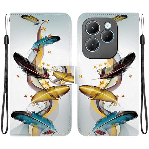 Funda de Cuero para Infinix Hot 40/40 Pro con Dibujo y Textura de Cristal (Plumas de Mariposa Doradas)