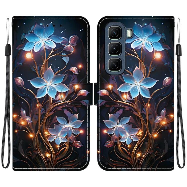Funda de Cuero con Dibujo y Textura de Cristal para Infinix Hot 50 5G (Flor de Linterna Pequeña)