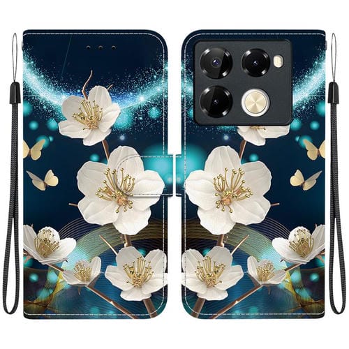 Funda de Cuero con Dibujo y Textura de Cristal para Infinix Note 40 Pro 4G/5G/Pro+ (Magnolia)