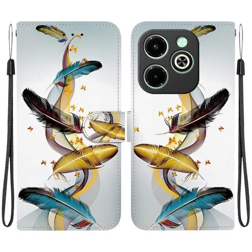 Funda de Cuero para Infinix Smart 8/HD/Hot 40I con Dibujo y Textura de Cristal (Plumas de Mariposa Doradas)