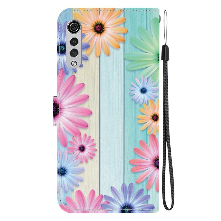 Funda de Cuero LG Velvet 5G G9 4G con Dibujo de Colores y Textura de Cristal (Girasoles)