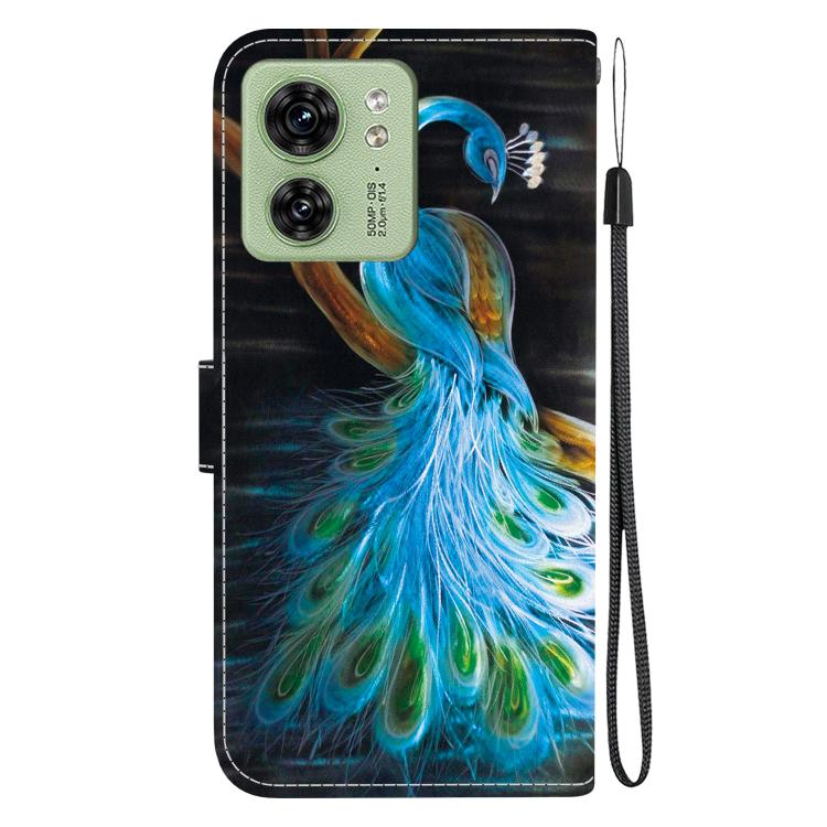 Funda de Cuero Motorola Edge 40 con Dibujo de Colores y Textura de Cristal (Pavo Real)