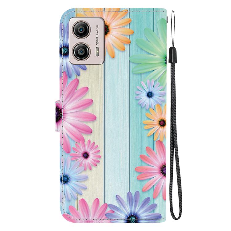 Funda de Cuero para Motorola Moto G13/G23/G53 con Dibujo de Colores y Textura de Cristal (Girasoles)