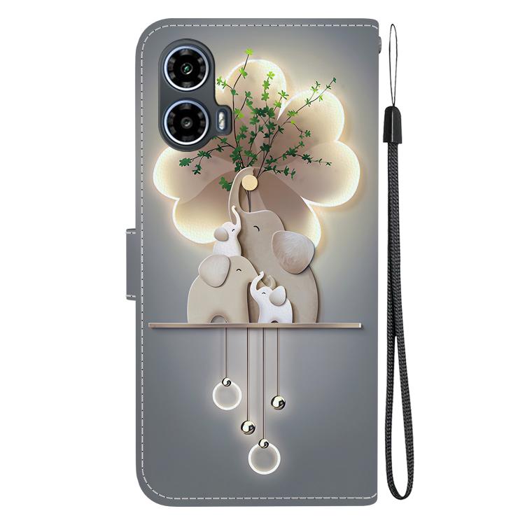 Funda de Cuero con Dibujo y Textura de Cristal para Motorola Moto G34 5G (Elefantes)