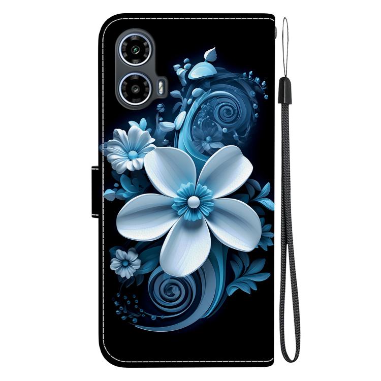 Funda de Cuero Motorola Moto G34 5G con Dibujo de Colores y Textura de Cristal (Orquídea Negra)