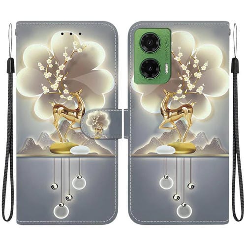 Funda de Cuero para Motorola Moto G35 con Dibujo de Colores y Textura de Cristal (Ciervo Sika)