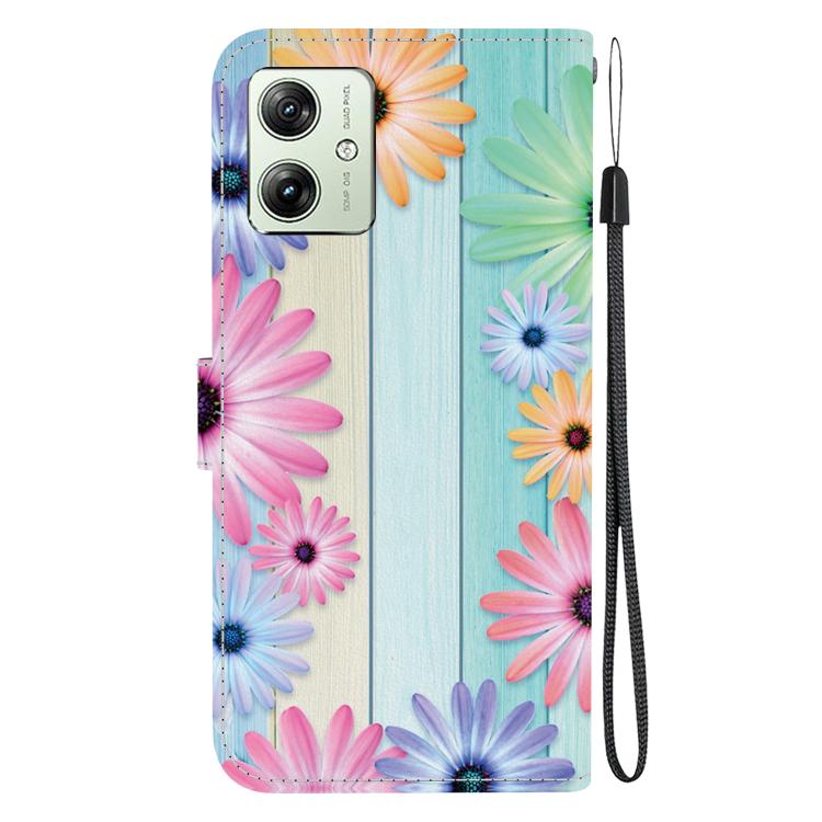 Funda de Cuero Motorola Moto G54 con Dibujo de Colores y Textura de Cristal (Girasoles)