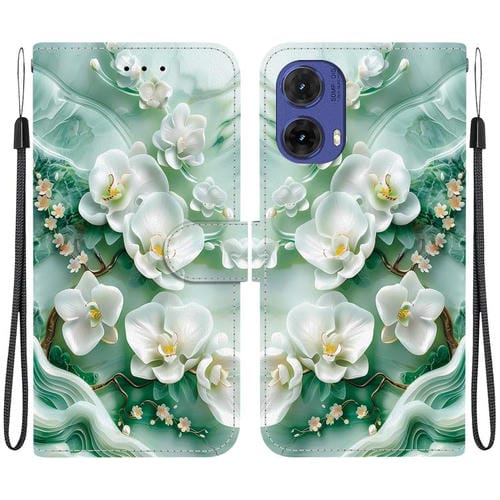 Funda de Cuero Motorola Moto G85 con Dibujo de Colores y Textura de Cristal (Flores de Jade)