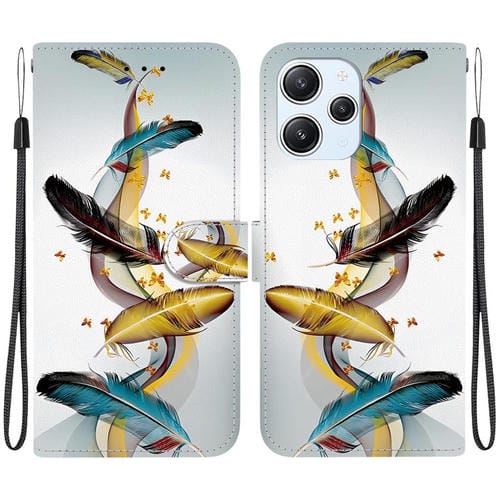 Funda de Cuero con Dibujo de Colores y Textura de Cristal para Redmi 12 4G/5G/Poco M6 Pro (Plumas de Mariposa Doradas)