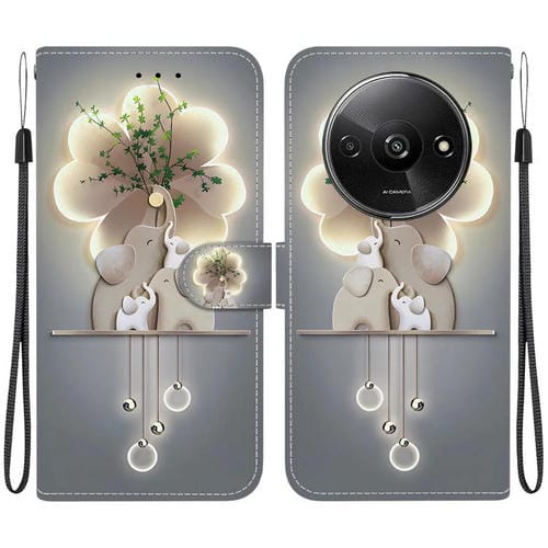 Funda de Cuero con Dibujo de Colores y Textura de Cristal para Redmi A3 (Elefantes)
