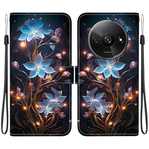 Funda de Cuero con Dibujo de Colores y Textura de Cristal para Redmi A3 (Flor de Linterna Pequeña)